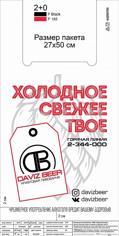 Если Вам нужна разработка дизайна пакета, мы с радостью Вам поможем. Предварительно Вы можете ознакомиться с требованиями, предъявляемыми к макету для флексопечати.